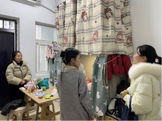 在此次走访过程中,辅导员详细了解同学们在新学期开学后住宿和生活中所遇到的难题,同时着重排查了学生在外租房情况、违规大功率电器使用、“飞线”插排及其他安全隐患问题。冯德祥书记提醒同学们要时刻注意安全,注重宿舍内务卫生,共同营造安全舒适的宿舍环境,也希望同学们做好个人规划,以更加高昂的姿态迎接新学期。