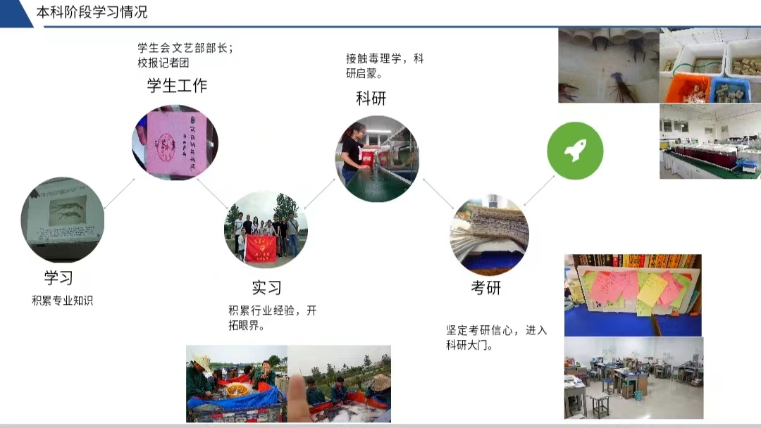 廉海荣首先分享了她丰富多彩的本科学习过程与在校期间积极参加学生工作和科研训练项目的经历,并通过毕业论文实验打开了科研大门,立志考研,最终顺利升学。