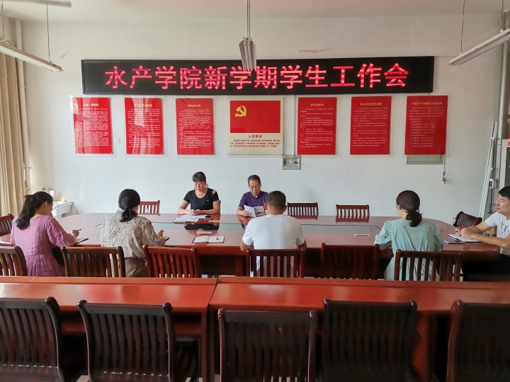 为做好疫情防控,保障学院学生顺利返校复学。水产学院于9月1日在学院会议室召开新学期学生工作会,学院党总支书记郭旭升、副书记黄光玲及全体专兼职辅导员参加会议。