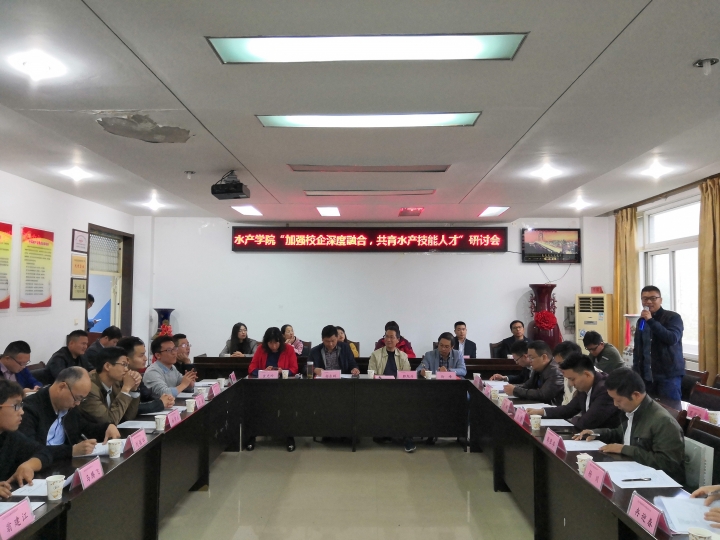 随后,水产学院主持召开了“加强校企深度融合 共育水产技能人才”研讨会。通威股份有限公司、广州利洋水产科技股份有限公司、福建大北农水产科技有限公司、郑州康诺生物科技有限公司、无锡绿水之源生物科技有限公司等来自全国38家企业和水产学院部分教师参加了会议。会上,水产学院党总支书记郭旭升致欢迎词,水产学院院长杨东辉介绍了我院校企合作模式,参加会议学院领导和与会人员对学院如何深化校企合作、提升人才培养质量等问题展开热烈讨论。武汉澳华农牧有限公司总经理杨孟伯、无锡绿水之源生物科技有限公司总经理刘振华、武汉天辰生物科技有限公司人事经理詹庆、广州利洋水产科技股份有限公司人事部经理林有成、福建大北农水产科技有限公司总裁助理兼营销总经理李哲分别分享了本公司校企合作培养人才的经验和体会。