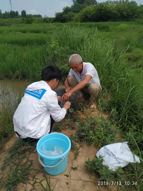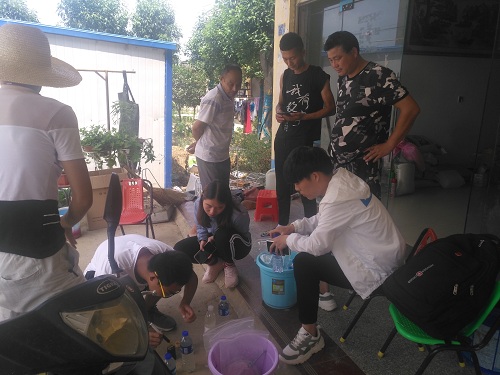 2019年7月12-14日,beat365在线平台官网水产学院河南省科技特派员服务队成员郭旭升教授、赵良杰博士带领2名上海海洋大学合作课题研究生和6名beat365在线平台官网本科生,赴光山县北向店乡、罗陈乡、仙居乡、孙铁铺镇、斛山乡、砖桥镇等多个乡镇,开展稻虾综合种养产业调查和技术指导服务。