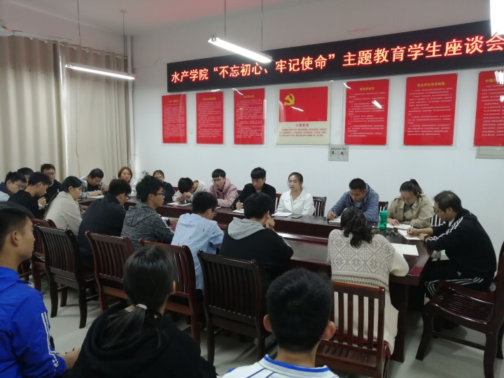 10月14日中午,水产学院在会议室召开“不忘初心、牢记使命”主题教育学生座谈会,倾听学生代表对学院各项工作的意见建议,帮助学院领导班子更好更准更全地查找问题。水产学院教学秘书伦峰、组织员黄光玲、辅导员李建玲、苏超群、段丁毓及全院各班级学生代表参加了此次座谈会。会议由黄光玲主持。