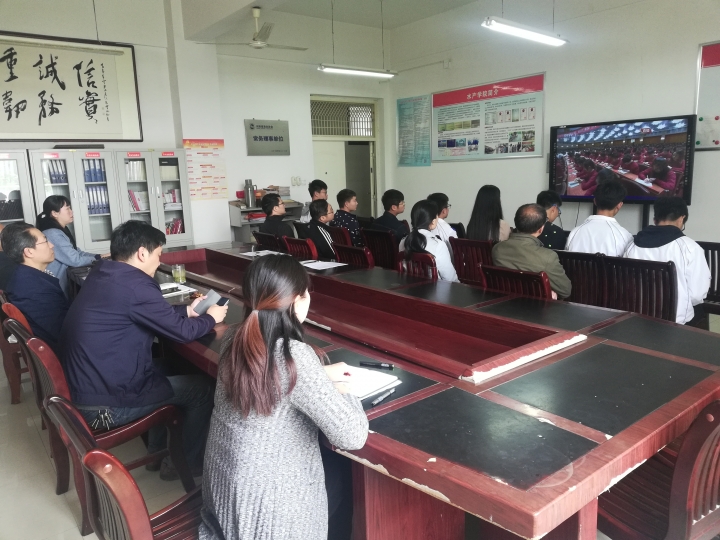 纪念五四运动100周年大会4月30日上午10时30分在人民大会堂举行。水产学院组织部分师生在党员活动室观看了大会直播。