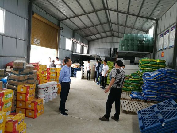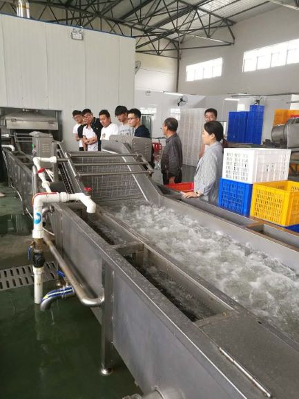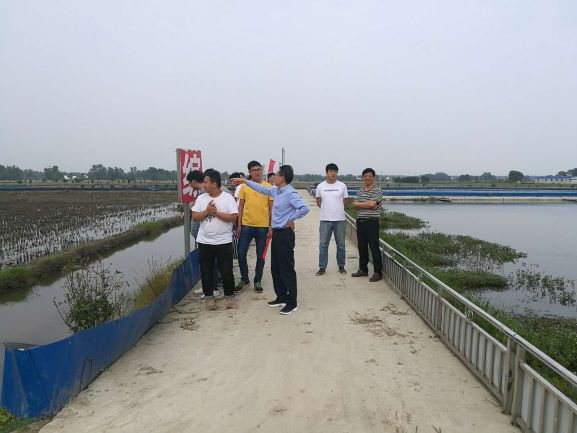 5月19日,师生一行先来到华来时代农牧科技有限公司小龙虾交易中心和华来时代稻虾综合种养基地,参观了小龙虾苗种交易市场、常用渔用饲料和水产动保产品;在稻虾综合种养基地,三位导师分别为同学们讲解了稻虾综合种养的技术、常见水草的管理问题和小龙虾的生物学特性,并对学生提出的问题做了一一解答。5月20日,师生一行来到潢川县黄国粮业稻虾综合种养基地,参观了小龙虾生产线,在观看通道上,公司负责人为同学们介绍了生产线中的清洗、蒸煮、剥制、包装及穿冰衣等环节的操作流程及注意事项,讲解通俗易懂,现场气氛活跃,学生们收获颇丰。