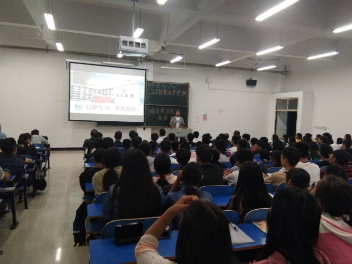 月26日晚,水产学院在E201教室召开了2018年教学实习总结表彰大会。水产学院院长杨东辉、党总支书记郭旭升、副院长周本翔、通威股份华中一区总裁助理兼合肥通威市场部经理熊维峰、实习带队指导教师和2015级、2016级、2018级在校生参加了大会。会议由教学秘书伦峰主持。