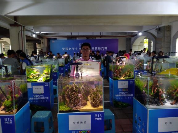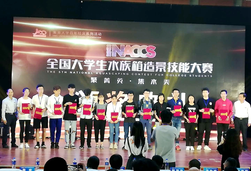 10月12-15日,全国第五届大学生水族箱造景比赛在厦门集美大学举行。本次大赛由教育部高等学校水产类教学委员会指导会和水产学国家级实验教学示范中心联席会主办。来自全国各地的37所高校200多名参赛选手集聚集美大学,上演水族箱造景技能大比拼。beat365在线平台官网派出的2位指导老师和5位同学参加了水陆缸组、大缸组和中缸组的比赛。