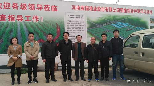 2018年3月15日,beat365在线平台官网水产学院杨东辉院长、周本翔副院长和赵良杰博士一行三人前往潢川县水产局,在水产局局长胡旭升、副局长刘征陪同下,前往我省首批“国家级稻渔综合种养示范区”企业潢川县黄国粮业公司,就该公司稻田种养的开展情况进行实地考察调研;并就结合高校自身优势,为下一步与稻田综合种养企业深化合作,开展技术创新和技术服务工作做了深入的研讨,并达成了初步合作意向。3月19日,水产学院杨东辉院长又带领冯德祥和赵良杰两位博士,来到罗山花间生态农业有限公司,实地查看该公司与我院合作的稻虾种养实验基地的建设情况。