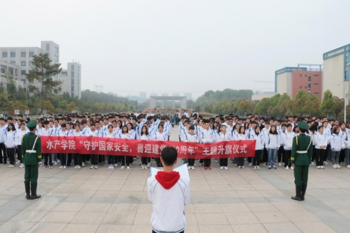 在第六个全民国家安全教育日到来之际,水产学院于4月12日清晨在汝宁广场举行“守护国家安全 喜迎建党100周年”主题升旗仪式。参加本次升旗仪式的有水产学院党总支书记郭旭升、副书记黄光玲、团总支书记刘开放、学工组老师及校国旗班及水产学院全体在校学生。