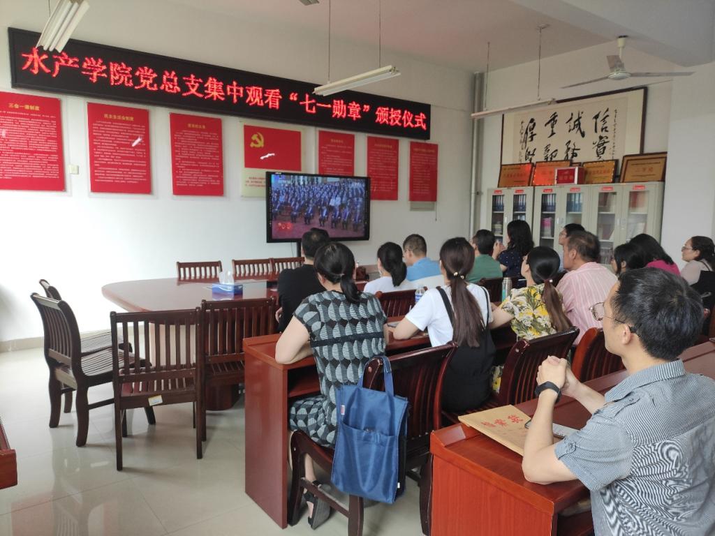 6月29日上午,“七一勋章”颁授仪式在人民大会堂隆重举行。中共中央总书记、国家主席、中央军委主席习近平颁授“七一勋章”并发表重要讲话。水产学院组织部分师生在党员活动室集中收看大会盛况直播,深刻领会习近平总书记重要讲话精神,学习29位“七一勋章”获得者的先进事迹,感受平凡党员给全党全社会带来的精神洗礼,体会诸多优秀党员先进楷模的强烈历史担当。