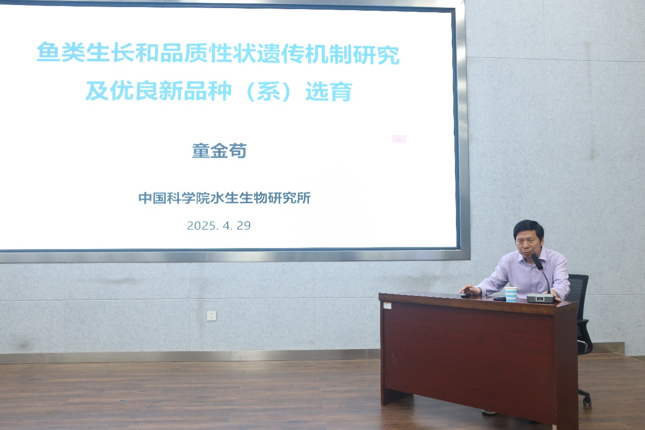 童金苟研究员自1985年以来,以鱼类遗传育种学、基因组学和育种生物技术为研究方向,开展鱼类生长、体型、性别、饲料转化率、低氧耐受等性状遗传机制研究,同时在鳙等经济鱼类中开展优良品种(系)选育。先后主持国家自然科学基金、973计划、重点研发计划等项目/课题10个以及中国科学院和省部委课题/子课题10多个;主导培育/合作培育国审水产新品种各1个;获国务院政府特殊津贴。此次学术活动加强了水产学院和中国科学院水生生物研究所在水产育种领域的互动,为beat365在线平台官网师生提供了宝贵的学习机会,水产学院将继续邀请高水平的专家学者来院讲学,以进一步促进我院水产学科发展。