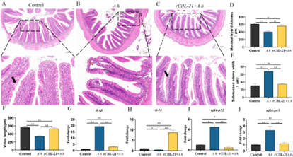 本研究通过原核表达系统成功制备了重组草鱼IL-21蛋白(rCiL-21),并系统阐明了其在嗜水气单胞菌诱导的草鱼细菌性肠炎中的保护作用及机制。研究发现,rCiL-21处理能够显著降低肠道细菌载量、缓解肠道组织病理损伤,并通过增加黏液层厚度、促进杯状细胞增殖、上调黏蛋白相关基因(agr2、muc2、klf4)和紧密连接蛋白(zo-1、claudin-3、occludin)的表达,增强肠道屏障完整性。最终显著降低细菌负荷并提高感染草鱼的存活率。该研究揭示了鱼类IL-21在维持肠道黏膜屏障、调控炎症反应及增强先天抗菌防御中的多重作用,为水产养殖中细菌性肠炎的防控提供了新的候选治疗策略。本研究获得河南省科技攻关项目及河南省现代农业产业技术体系建设专项资金等项目的资助。