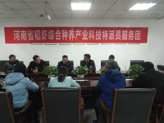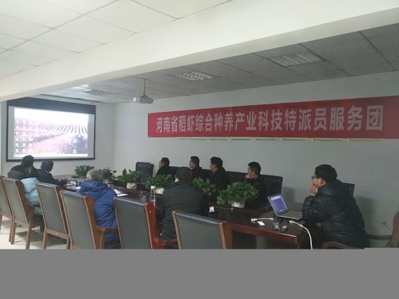 2018年11月16日下午,河南省稻虾综合种养产业科技特派员服务团成员杨东辉、尹健、冀保毅、冯德祥、赵良杰一行5人,赴潢川县开展稻虾综合种养专项科技服务。几位教师先来到潢川县黄国粮业股份有限公司,为当地企业培训全国稻渔综合种养模式创新大赛和渔米评比的参赛方式及规则。会后,与黄国粮业稻渔综合种养项目负责人、海大集团负责人就产学研合作等事宜进行了座谈并实地考察了黄国粮业示范基地,就明年开展技术合作达成了初步意向。