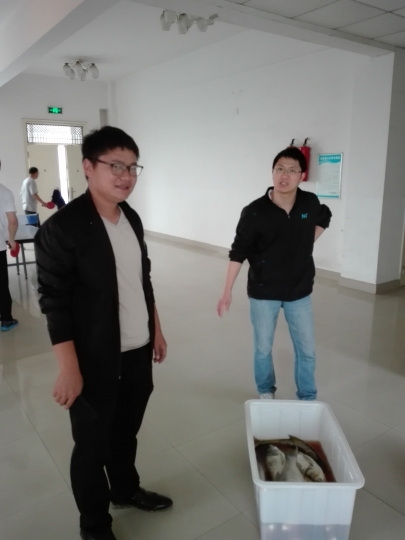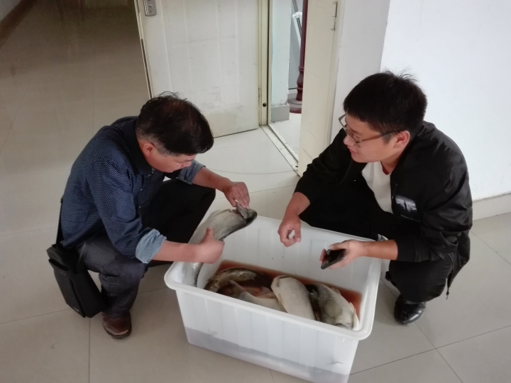 2018年5月22日,驻马店长龙山农牧有限公司养殖场送病鱼来水产学院实验室,希望水产学院为养殖场诊断病害。水产学院信阳市水生动物病害防控工程技术研究中心团队教授杨治国、汪成竹副教授、田海军副教授、吴坤杰副教授等专家团队详细调研了养殖情况,初步诊断为上游污水造成的缺氧与细菌并发症,与养殖场技术顾问针对病害发生与防治情况进行了详细交流。吴坤杰对水质进行了全面检测,并提出解决方案,以控制病害的发展。此次水产学院相关专家团队为养殖户找出病害发生的原因,有力的保障了水产养殖产业健康持续发展。(信阳市水生动物病害防控工程技术研究中心)