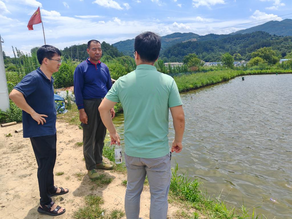 2024年7月8日,水产学院吴坤杰、鞠晨曦和唐永涛3位专业教师组成河南省科技特派员服务队(以下简称服务队),赴新县泓源泥鳅养殖生态农场进行科技服务。