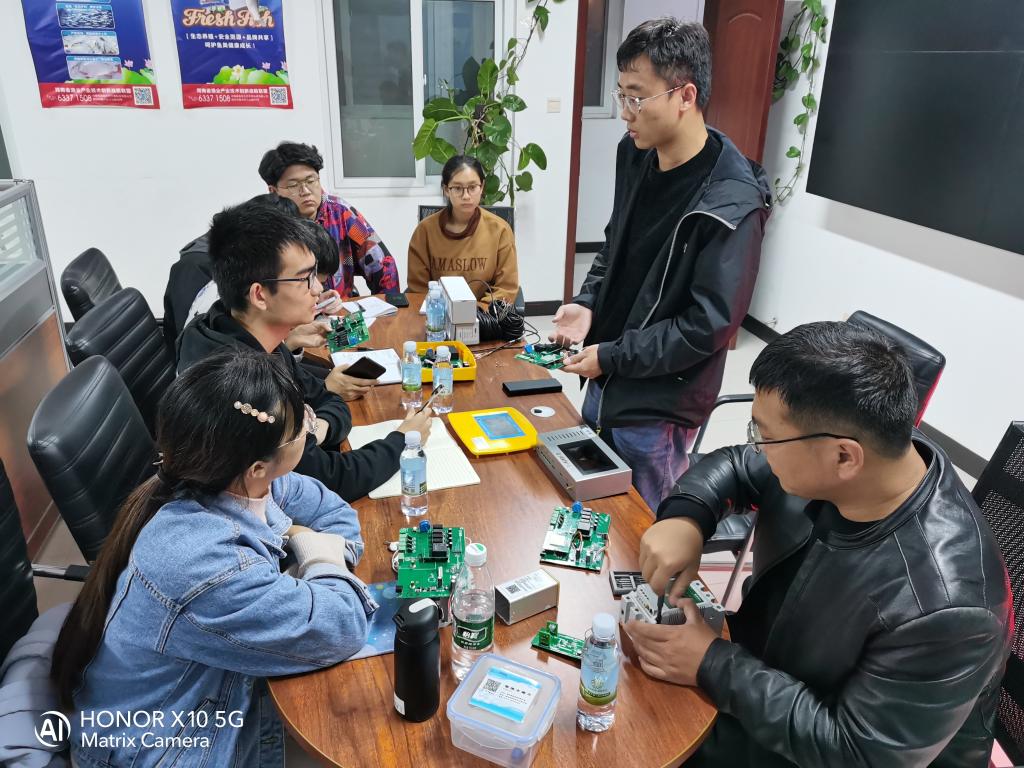 首届全国高校智慧渔业设计大赛暨智慧渔业人才培养高峰论坛将于2021年11月12至14日举办。为更好备战本次比赛,提升学生参赛水平,10月25日至27日,我院专业教师苏超群博士和刘加慧博士带领5名学生前往河南省智渔科技有限公司进行了交流,公司总经理杨向往和产品经理王旭东接待了我院师生。