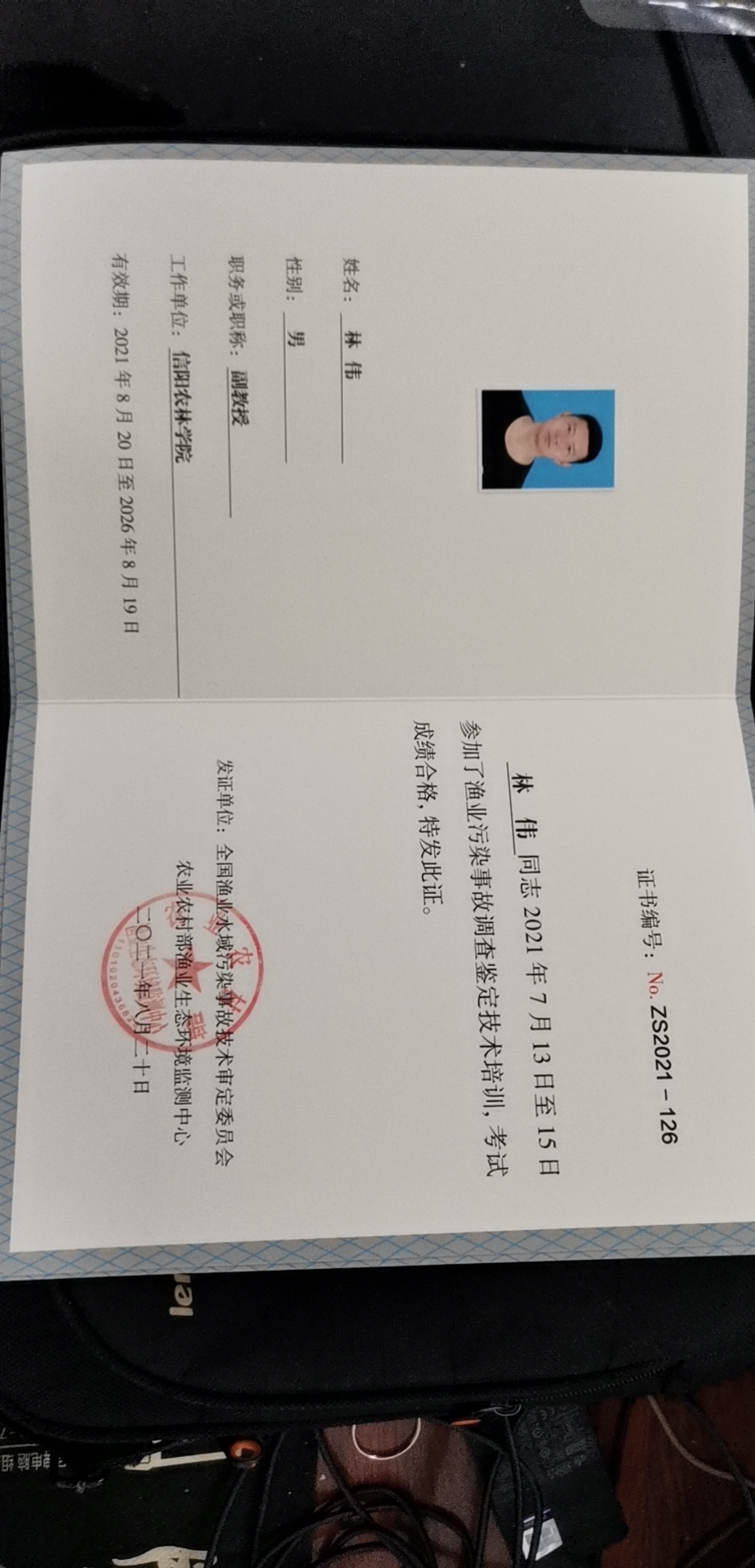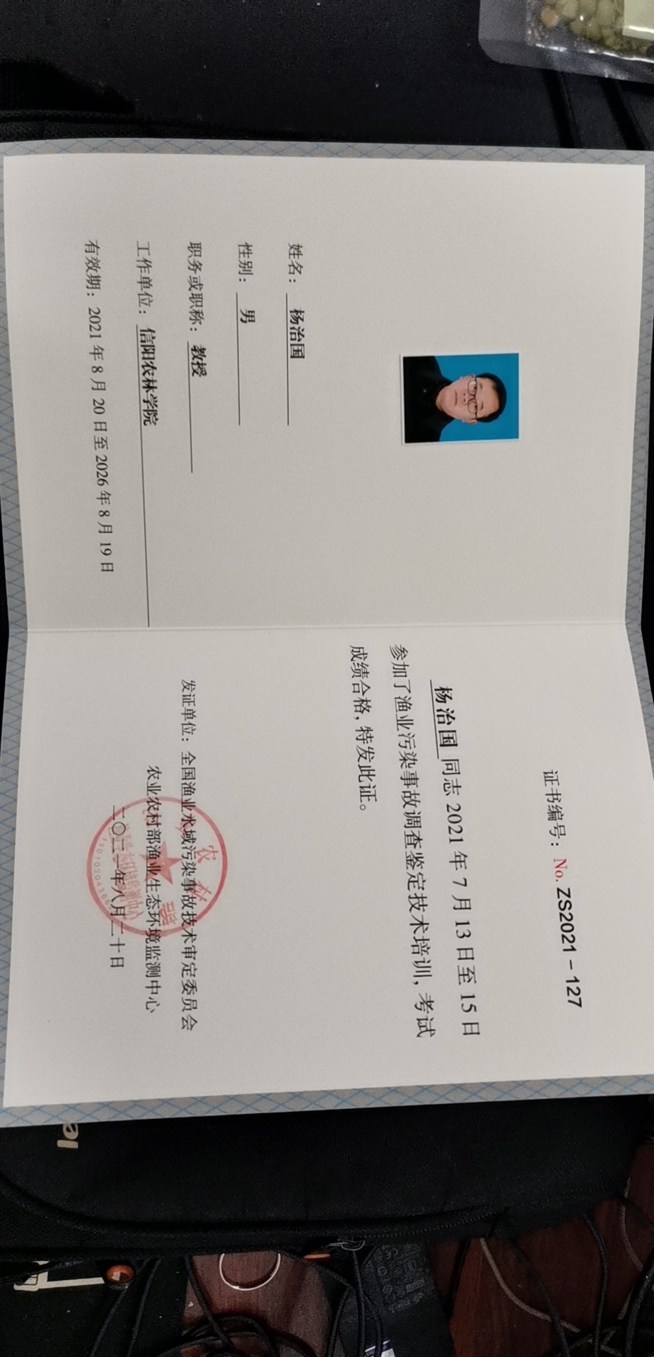通过培训,两位教师对渔业污染事故鉴定方法、经济损失计算方法有了深刻的了解,并顺利取得了渔业水域污染事故调查鉴定培训合格证书,具有了从事该方面的资质。本次培训也为河南省渔业污染事故的鉴定奠定了理论和技术支持。