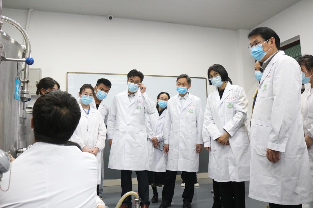 在酿造酒生产实训室,校领导一行参与醇酿社团啤酒灌装体验活动。