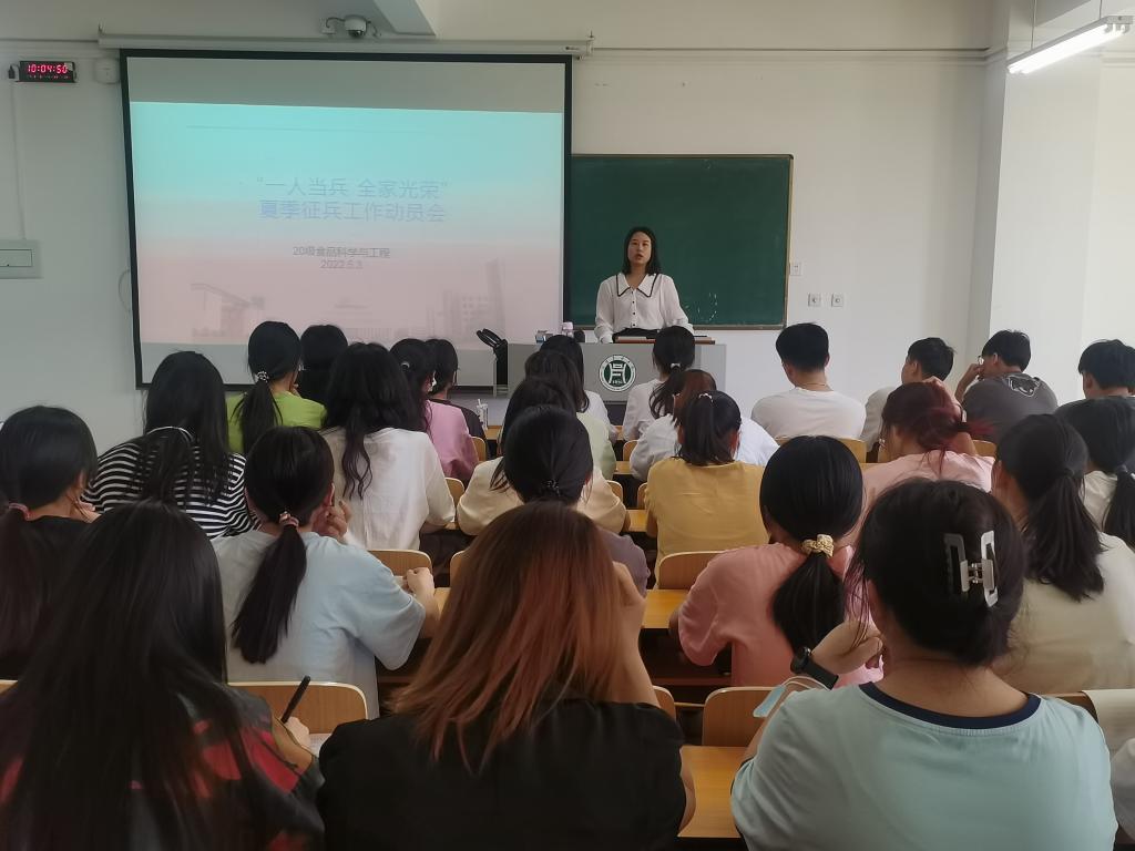 为了牢固树立忧患意识和使命意识,居安思危,防患未然,鼓励毕业生参军入伍。2022年4月25日-29日,食品学院各班级辅导员陆续开展了征兵宣传动员主题班会。