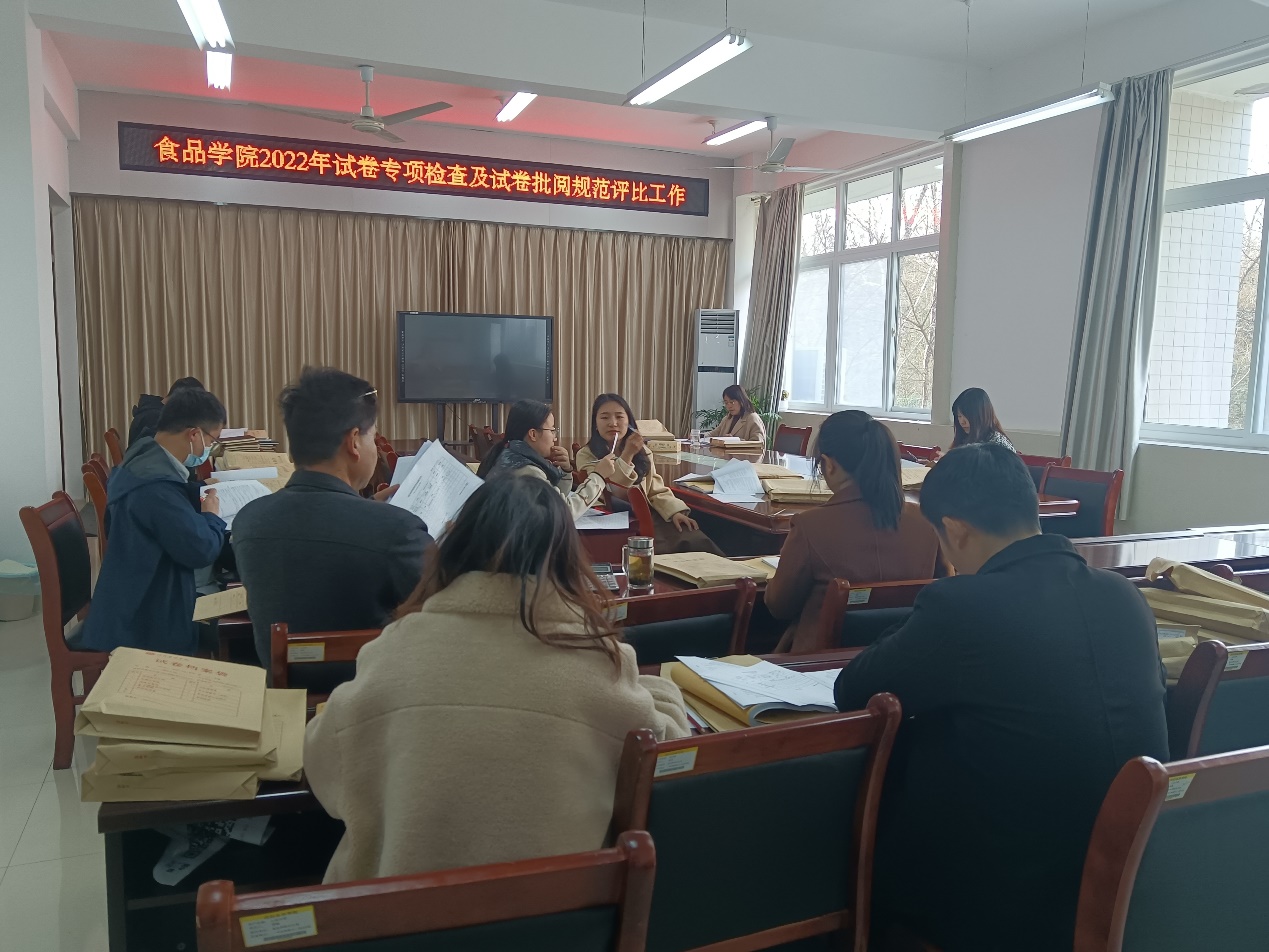 为进一步规范教学管理,加强对教学质量的监控,提升教师业务素质和教学水平,巩固评估成效。食品学院3月1日在科技楼1B206会议室开展2021-2022学年第一学期期末试卷批阅规范进行专项评比检查活动,副院长李建芳及教师代表12人对上学期期末试卷进行了全覆盖检查检查评比。