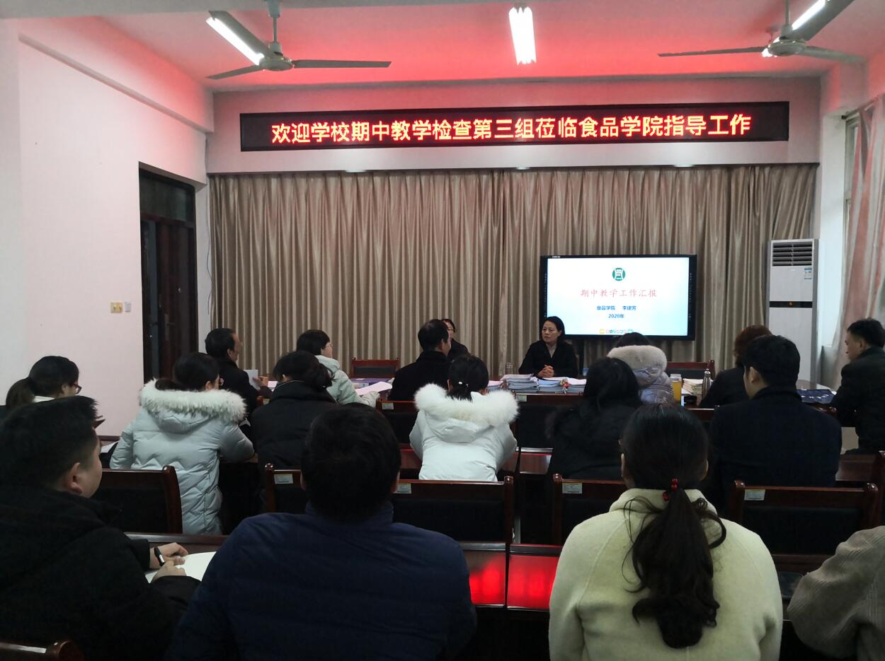 根据学校《2020年秋冬学期期中教学检查学校检查方案》安排,为提高教学质量,推进人才培养质量的提升,12月1日下午在组长魏明奎教授带领下,校期中教学检查第三组一行6人到食品学院开展检查工作。食品学院院长邢淑婕、副院长李建芳、邵颖、教学秘书、各教研室负责人及青年教师代表参加会议。会议由李建芳副院长主持。
