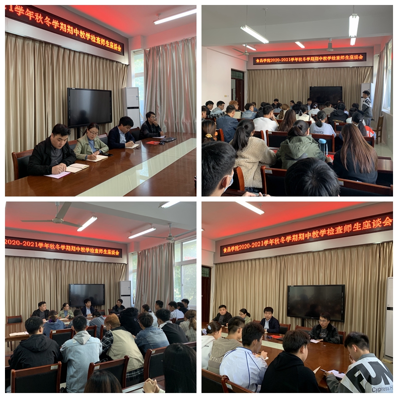 为加强师生交流,倾听学生心声,进一步了解教学实际情况,加强教学信息反馈, 2020年11月10日食品学院在科技楼1B206召开2020-2021学年秋冬学期期中教学检查师生座谈会。食品学院党总支副书记刘涛、食品学院副院长李建芳、教学秘书李飞、专职辅导员柳诚刚及各班学生代表与会,会议由食品学院党总支副书记刘涛主持。