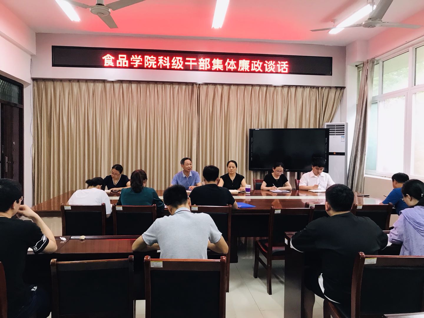 6月18日下午,食品学院党总支在1B206会议室召开科级干部任职集体谈话及廉政谈话会议。学院党政领导班子及全体科级干部参加会议。会议由学院党总支副书记刘涛主持。