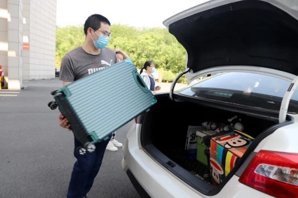 “同学,行李重不重,我来帮你拿吧”。老师们按照《食品学院2020届本科毕业生返校复学网格化管理分组》情况,一对一负责接学生,帮学生把行李抬到车上,运送到宿舍,又帮学生把行李搬到宿舍门口,来来回回好几趟,保证把每一个学生安全送到宿舍。“作为食品学院的老师,我要承担起自己应尽的责任,尽全力为返校学生服务。”他们说。因学生们到达学校时间有差异,他们来不及吃饭,从朝阳刚升到夜幕降临,依然在校园门口和宿舍之间来回奔波。在返校复学的关键时刻,食品学院全体教师以良好的精神风貌和务实的工作态度努力为学生提供精准、健康、暖心的返校服务,全力护航毕业学子返校,为同学们送上了返校后的第一份温暖。(食品学院 黄卉卉)