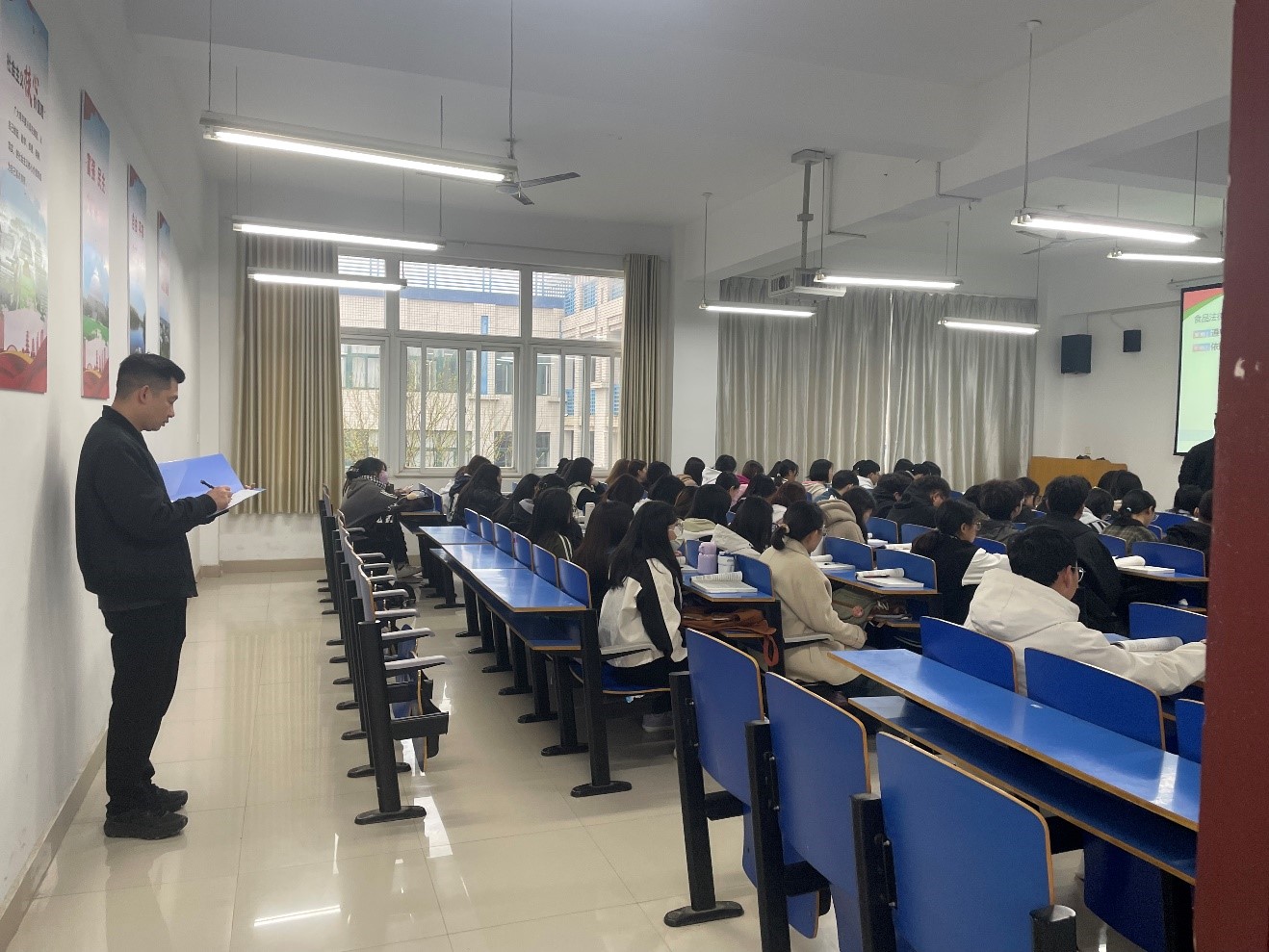 近日,根据《beat365在线平台官网教学督导工作实施办法》、《beat365在线平台官网院级教学督导工作实施细则》要求,食品科学与工程学院成立教学督导组,以不定时“推门巡视督查”的方式开展了课堂督导检查。对教师教学材料、课堂授课情况、课堂学生纪律及教室安全卫生等情况进行全面督导。旨在通过建立常态化巡视督查机制,确保教学秩序稳定正常,教风学风积极浓郁,教学环境安全整洁。