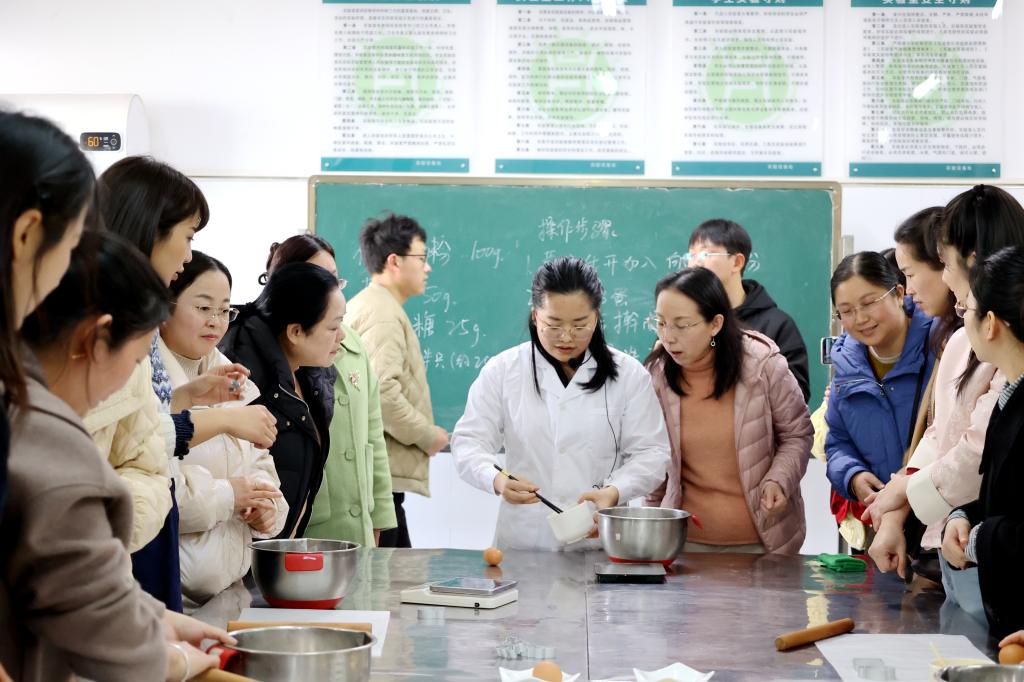 为庆祝第114个“三八”国际劳动妇女节的到来,全面展示beat365在线平台官网女教职工蓬勃向上、积极进取的精神风貌,丰富女职工精神文化生活,提高女职工的幸福感,充分激发她们立足岗位、建功立业的积极性,3月8日下午,由校工会主办、食品科学与工程学院承办的“巾帼同行·共享春甜”2024年“三八节”糕点DIY活动如期开展。校党委副书记王万玲、副校长李益民莅临活动现场指导,校工会相关负责同志,食品科学与工程学院班子成员,以及各分工会女教职工代表50余人参加了活动。活动由食品科学与工程学院党总支书记李海祺主持。