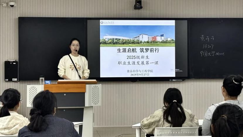 为帮助新生尽快适应大学生活,明确专业方向与职业规划,9月27日-29日,食品科学与工程学院以“生涯启航筑梦前行”为主题,先后分六场次开展2025级新生入学教育“职业生涯发展第一课”专题讲座。全体新生参加了讲座。