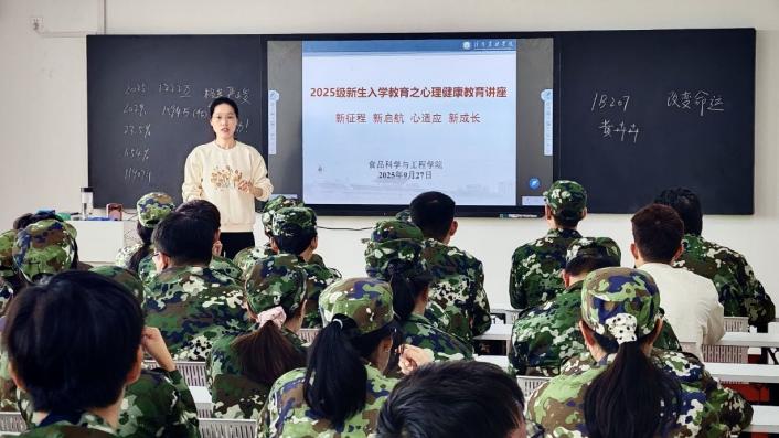 为帮助2025级新生尽快适应大学生活,提升心理调适能力,9月27日-29日,食品科学与工程学院在三教先后分六场次开展了主题为“新征程·新启航·心适应·心成长”心理健康教育专题讲座。全体新生参加了讲座。讲座由学院心理专员黄卉卉老师主讲。