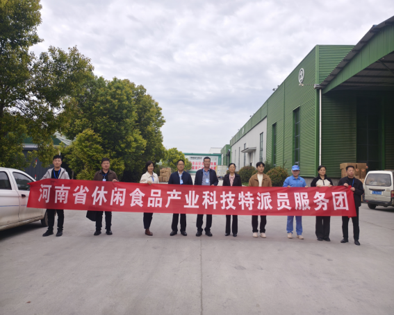 当日上午,易军鹏作为河南省休闲食品科技特派员服务团团长,带领李海祺、朱静、李坤、曹蒙等七名成员走进漯河市临颍县,服务团深入河南御江食品有限公司、漯河联泰食品有限公司、河南中大恒源生物科技股份有限公司、河南畅翔生物科技股份有限公司、河南秾嘉食品产业有限公司等五家企业的生产车间与研发中心,精准对接产品创新、工艺优化、质量管控等技术痛点,针对休闲食品保鲜、功能性配料应用等关键问题提供定制化解决方案。