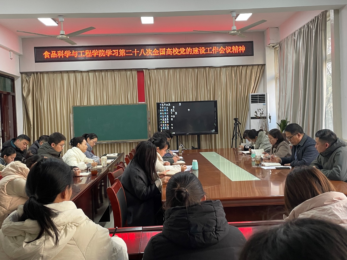 12月24日下午,食品科学与工程学院在科技楼1B206会议室集体学习第二十八次全国高校党的建设工作会议精神。学习会由学院党总支书记李海祺主持,学院全体教师党员参加学习。