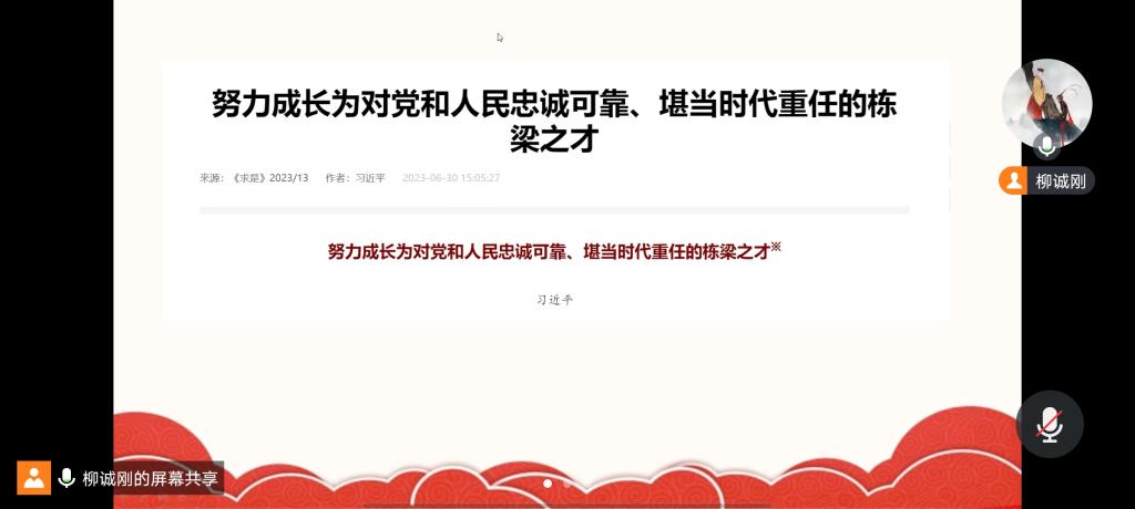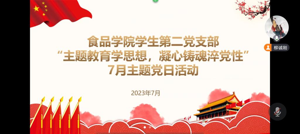 713日,食品学院学生第二党支部通过腾讯会议的方式开展“习近平总书记与大学生在一起”学习分享主题之“主题教育学思想,凝心铸魂淬党性” 主题党日活动。