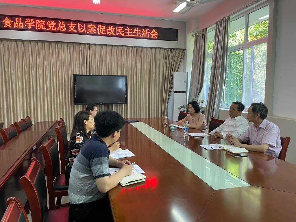 2022年5月30日下午,食品学院党总支班子在科技楼1B206召开郑州“7·20”特大暴雨灾害追责问责案件以案促改专题民主生活会。会议由学院党总支书记夏新奎主持,李益民副校长到会指导工作。