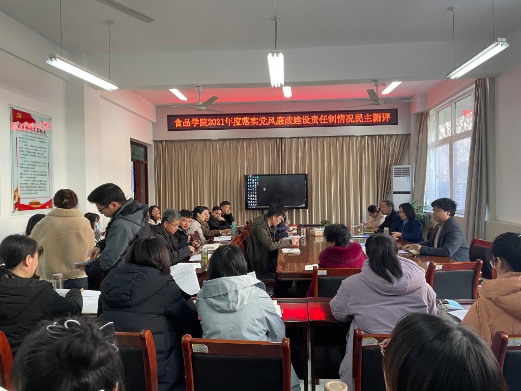 12月21日,食品学院党总支在1B206组织召开2021年度党风廉政建设责任制情况民主测评会议,民主评议对象为我院落实党风廉政建设工作情况和院领导班子成员落实党风廉政建设工作情况。全院教职工参加此次会议,由纪检委员刘涛主持。