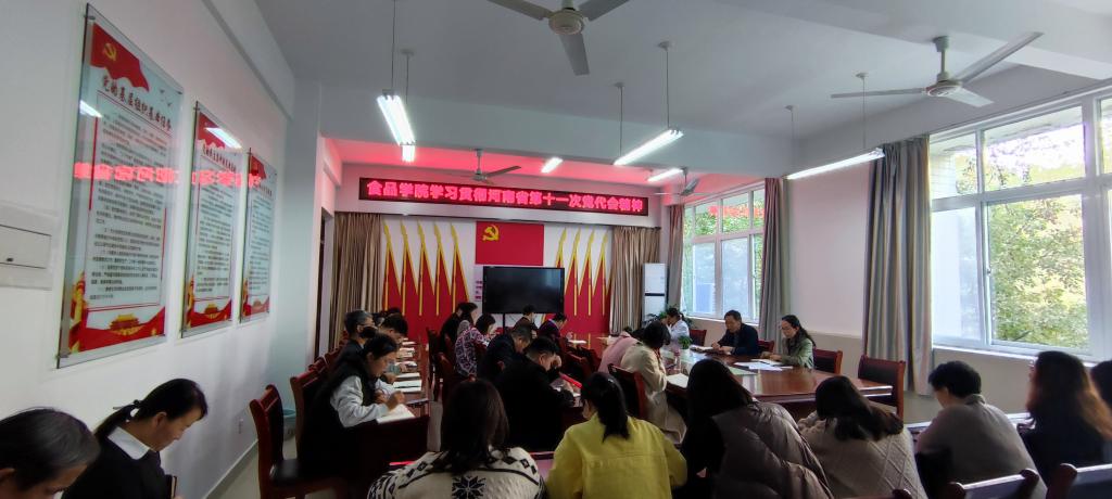 11月2日下午,食品学院召开专题学习会议,传达学习省第十一次党代会上楼阳生书记所作的《高举伟大旗帜牢记领袖嘱托为确保高质量建设现代化河南确保高水平实现现代化河南而努力奋斗》的报告,以及省委十一届一次全会精神。会议由学院党总支书记夏新奎主持,学院全体教职工参加。
