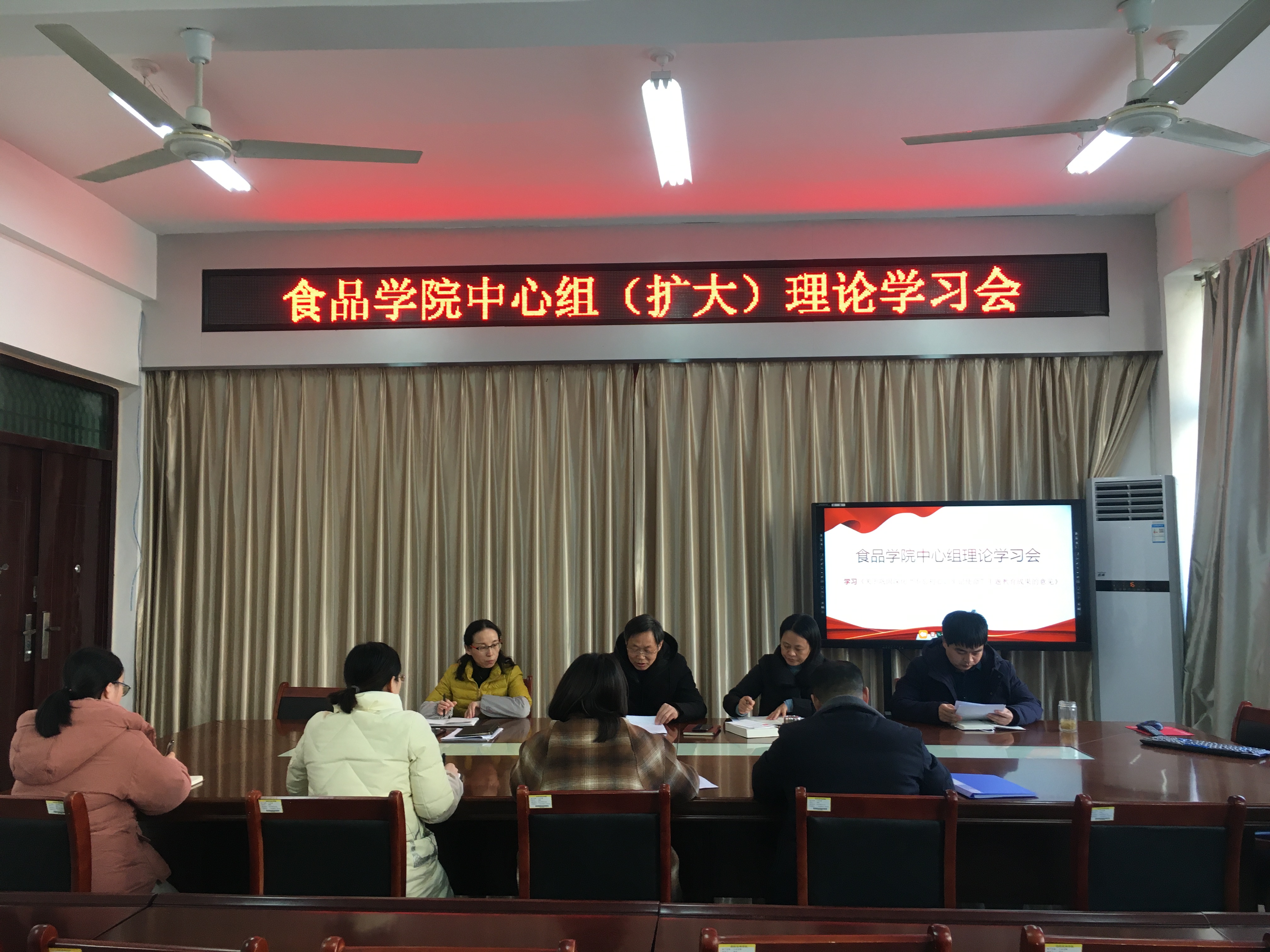 为深入学习贯彻习近平新时代中国特色社会主义思想,巩固深化“不忘初心、牢记使命”主题教育成果,2021年1月19日,食品学院党总支在1B206会议室召开中心组(扩大)理论学习会,会议由党总支书记夏新奎主持,学院副科级以上干部参会。