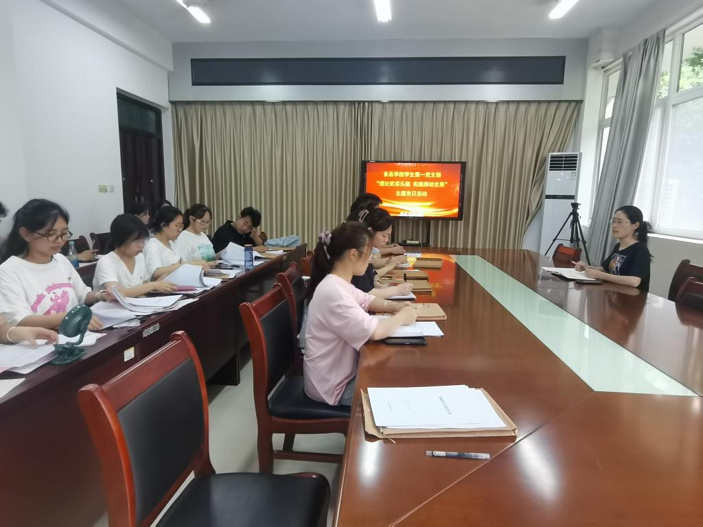 为深入学习贯彻习近平新时代中国特色社会主义思想,用党的创新理论武装头脑、指导实践、推动工作,6月21日,食品学院学生第一党支部在1B206会议室开展了以“理论武装头脑 实践推动发展”为主题的党日活动。此次活动由党支部书记黄卉卉主持,支部全体党员同志出席。