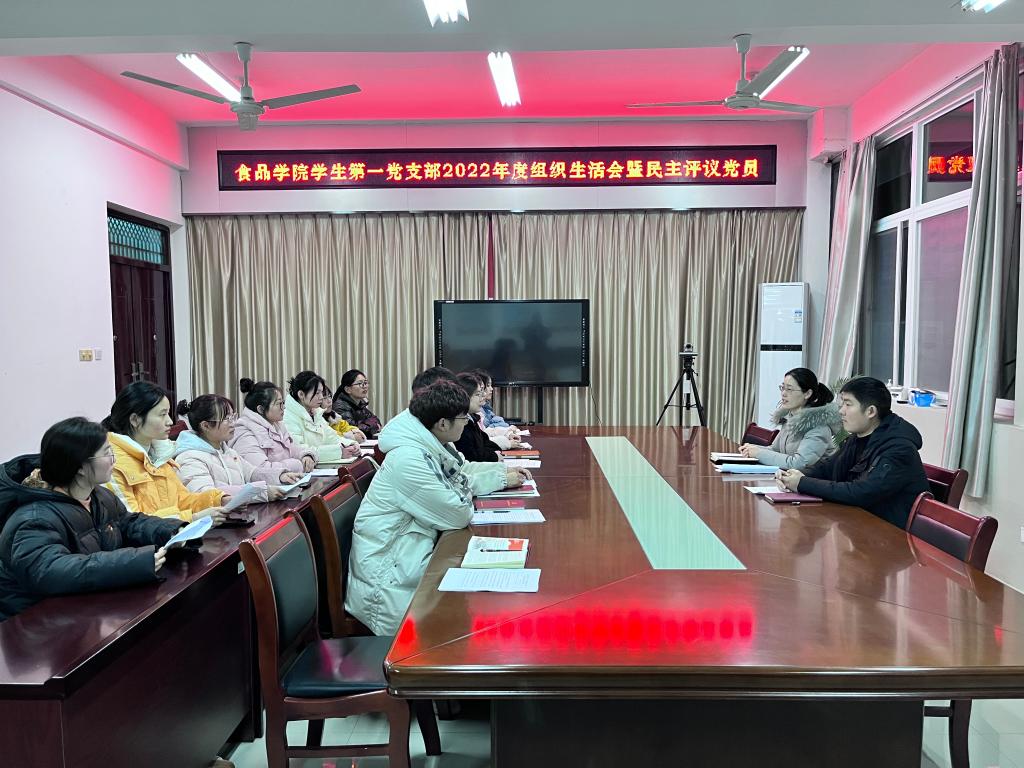 为深入学习贯彻党的二十大精神,坚持不懈用习近平新时代中国特色社会主义思想凝心铸魂,根据《beat365在线平台官网2022年度党支部组织生活会和开展民主评议党员实施方案》要求,2月21日,食品学院学生第一党支部在1B206会议室召开了2022年度组织生活会暨民主评议会,会议采用线上线下相结合的方式进行。会议由党支部书记黄卉卉主持。