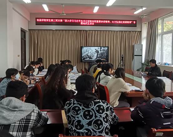 其次,食品学院学生第二党支部组织支部全体党员观看中央电视台《国家记忆》栏目播出的专题片《根脉——红旗渠精神》,引导党员深刻理解把握“自力更生、艰苦创业、团结协作、无私奉献”红旗渠精神的丰富内涵,从红旗渠精神中汲取不竭精神动力,激发“越是艰险越向前”的英雄气概和“敢教日月换新天”的昂扬斗志。