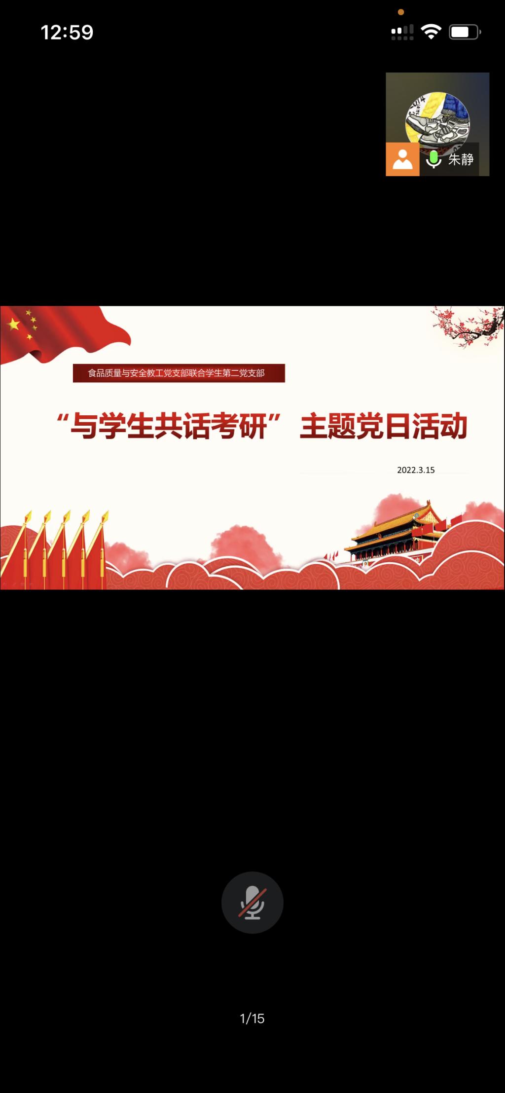 3月15日中午,食品质量与安全教工党支部全体党员联合食品学院学生第二党支部在利用腾讯会议在线上为食品质量与安全专业学生共同开展了一次“与学生共话考研”的主题党日活动。