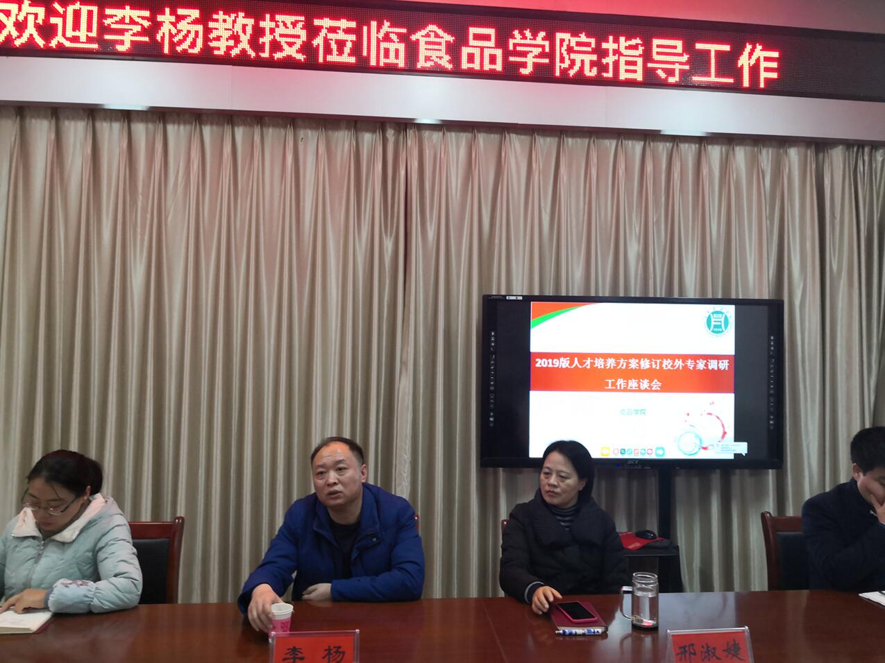邢淑婕院长首先向各位与李杨教授介绍了食品学院发展历史、学科专业建设现状、办学定位与人才培养目标、师资队伍与教学资源以及招生与就业等基本情况,阐述了我院人才培养方案的制定依据、指导思想和基本原则,指出了此次培养方案论证的内容和重点。然后,食品科学与工程专业教研室主任王荣荣副教授、食品质量与安全教研室主任朱静副教授分别对各专业人才培养方案修订工作进行了汇报。