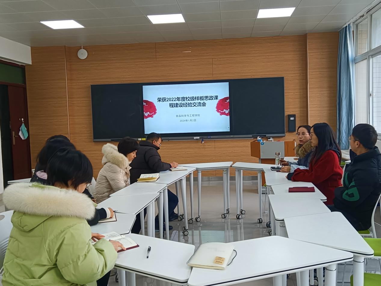 2024年1月2日食品科学与工程学院在1A304召开2022年度校级样板思政课程建设经验交流会,副院长邵颖主持会议。