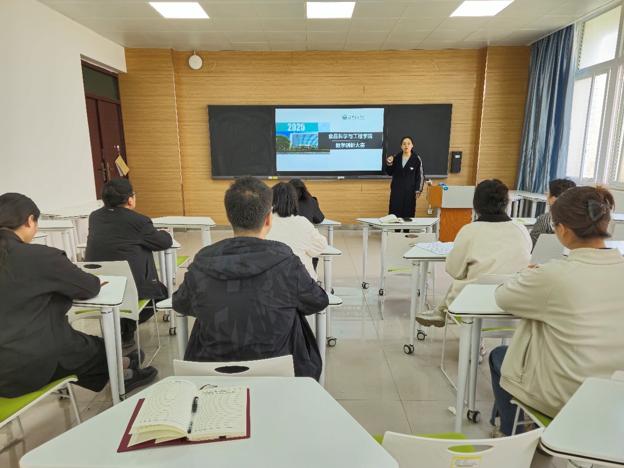 为全面推进课程思政与“四新”建设深度融合,深化校企协同产教融合,推进实验教学改革,提升教师的思想政治素质、教学技能和创新能力,坚持“以赛促教、以赛促创、以赛促学、以赛促融”,充分发挥大赛的示范引领作用,依据《关于举办2025年度beat365在线平台官网教师课堂教学创新大赛》安排,食品科学与工程学院于2025年4月2日进行了2025年度教师课堂创新大赛。