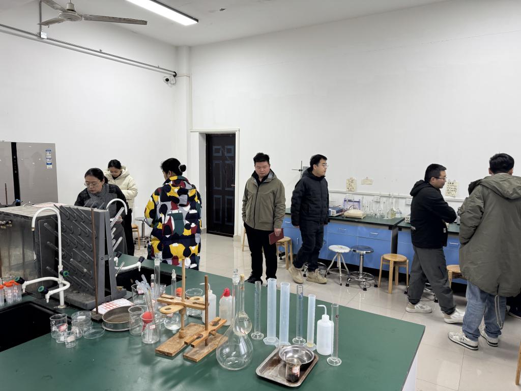 检查过程中,李海祺书记、李建芳院长、朱静副院长、王荣荣副院长、实验教学中心主任涂剑秋、各教研室主任及相关实验教师一行深入各实验室,重点对实验室水电设施、危化品存储与管理、实验设备运行状态、消防器材配备及应急通道畅通情况等方面进行了全面细致的排查。在食品检测实验室,检查组仔细查看了玻璃器皿、实验试剂的规范摆放情况,对实验台的清洁度、通风系统的运行状态进行了重点核查;在材料制备与加工实验室,检查组对大型仪器设备的断电断气情况、实验废弃物的分类处置流程进行了逐一检查,同时对实验室安全管理制度的落实情况进行了现场督导。