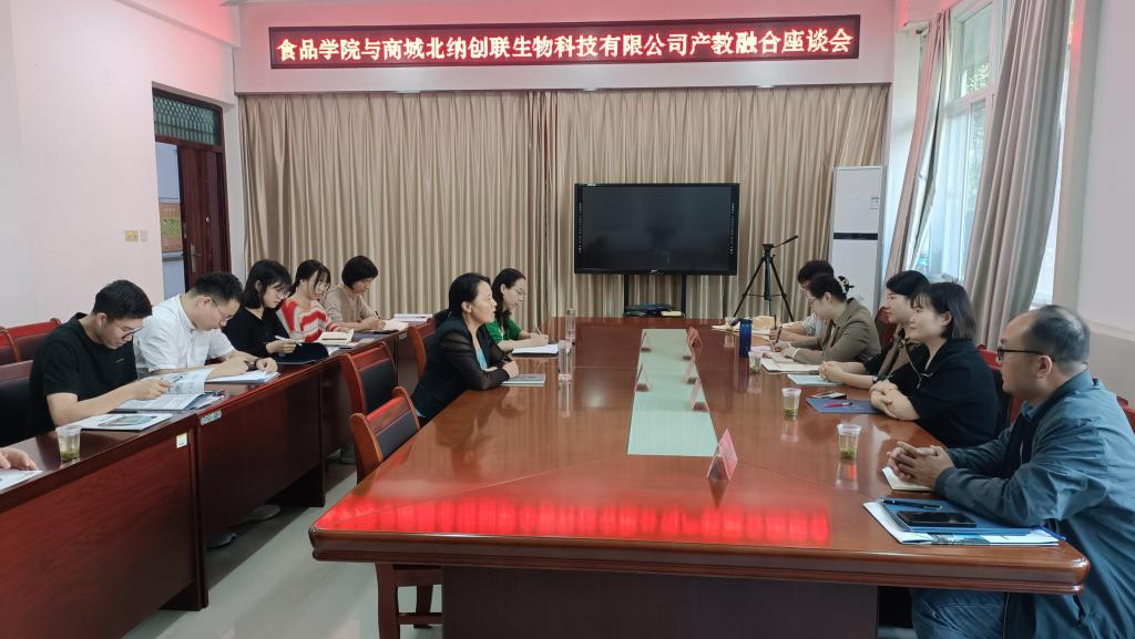 为响应国家关于加强学校和企业合作的号召,充分发挥校企双方优势,充分发挥高等教育为社会、为企业服务的功能,2023年10月18日,beat365在线平台官网食品学院与商城北纳创联生物科技有限公司(以下简称商城北纳公司)就实验室共建和产学研合作进行深入探讨。在副院长邵颖教授和食品质量与安全教研室主任朱静博士的陪同下,商城北纳公司代表一行7人参观了位于学术交流中心的共建实验室情况,并就实验室建设和实验室改造提出具体建议,然后来到食品学院办公楼参加产教融合座谈会。