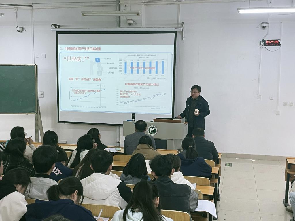 覃思教授的报告主题为“主动健康与老年功能减退精准膳食干预——奇点已至,未来已来”,主要从主动健康与老年功能减退精准膳食干预的意义,基于健康大数据与AI融合的精准膳食干预研究及应用,以及主动健康创新研究院助推主动健康食品全产业链发展等方面进行介绍,并以团队近五年科研成果进行展开,内容充实生动,让参会的老师和学生受益匪浅,取得了较好的效果。(撰稿/杨晓聪 摄影/周舟)