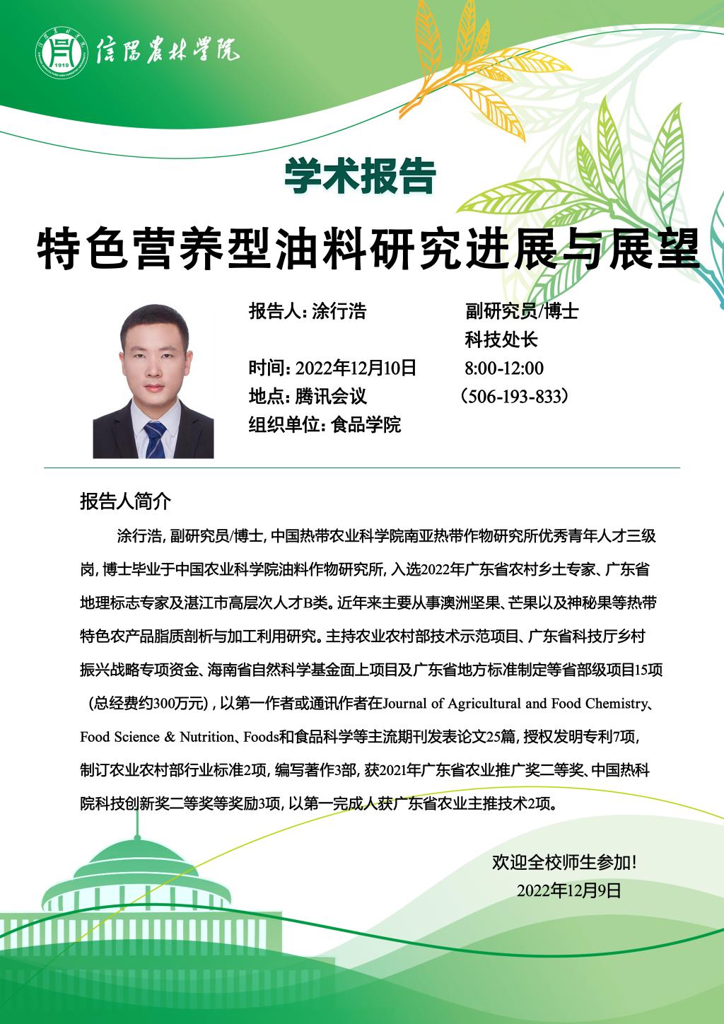 食品学院举行“食品•健康学术论坛”第九期学术报告及交流会