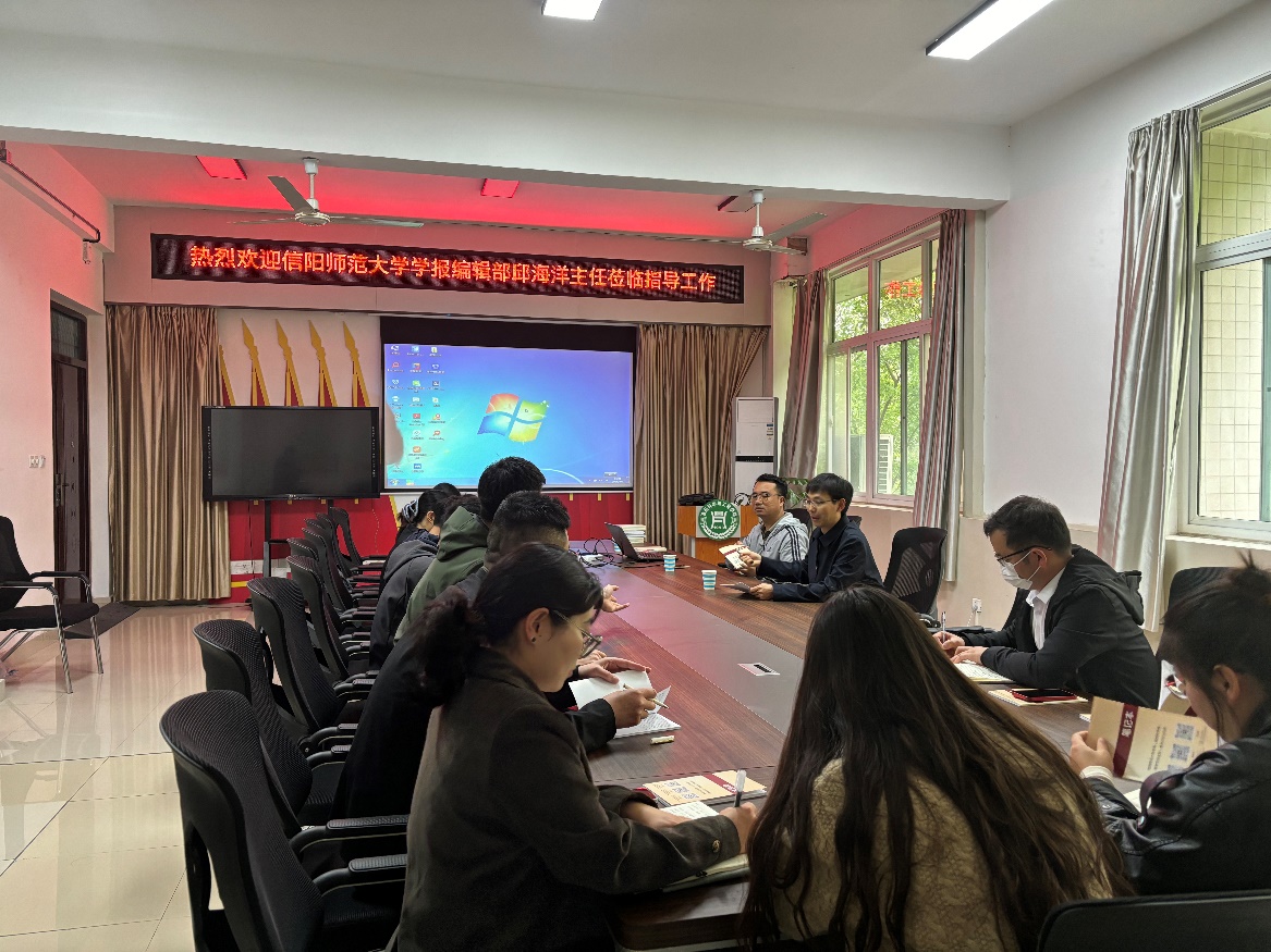 4月7日,信阳师范大学学报编辑部主任邱海洋一行3人莅临我院交流指导。学院副院长朱静主持会议,博士学历教师代表参加此次交流活动。